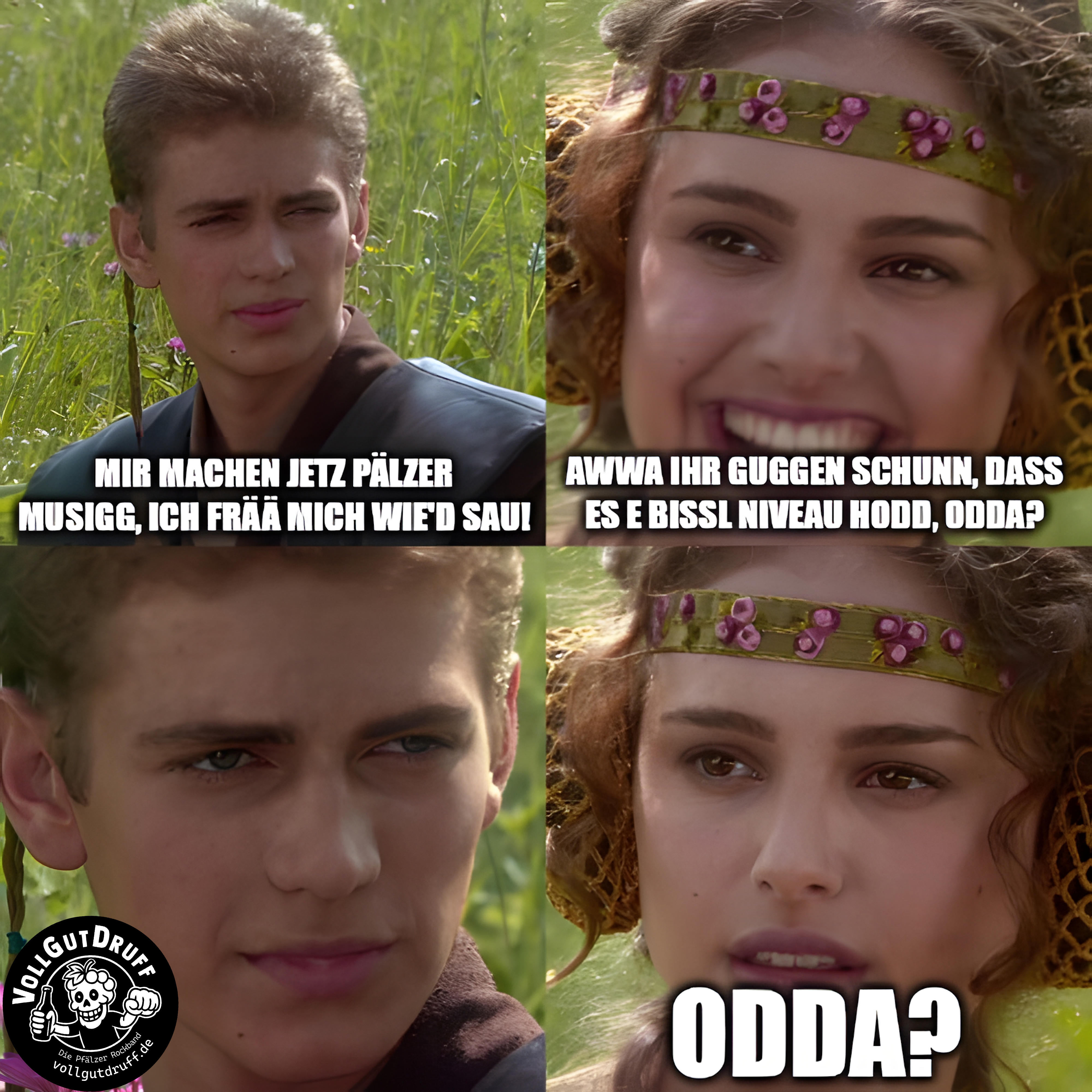 | Beitrag vom Montag, 26.01.2026 Die erste Schöpfung aus Sebastians Meme-Manufaktur: "MIR MACHEN JETZ PÄLZER MUSIGG, ICH FRÄÄ MICH WIE'D SAU! | AWWA IHR GUGGEN SCHUNN, DASS ES E BISSL NIVEAU HODD, ODDA? | ODDA? " Link: https://imgflip.com/i/ahvi03 #VollGutDruff #LiveMusik #LivePlay #Meme #LiveMeme #goodvibes #diepfälzerrockband #pfalz #schön #lebendig #echt #dialekt #lebensgefühl #event #party #livevent #veranstaltung |